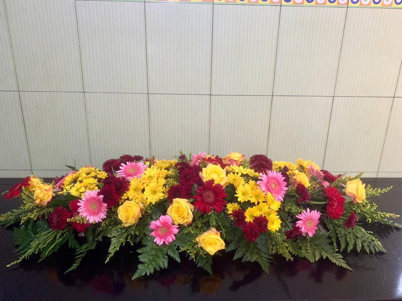 “Karangan bunga meja ini dirangkai dengan indah menggunakan kombinasi bunga segar pilihan, seperti mawar, lily, dan hortensia, yang menciptakan suasana elegan dan menawan. Dipadukan dengan dedaunan hijau yang segar, rangkaian ini memberikan kesan alami dan menyegarkan. Cocok sebagai dekorasi di ruang kerja, ruang tamu, atau sebagai hadiah istimewa untuk orang terkasih. Ditempatkan dalam vas kaca atau anyaman rotan yang menambah sentuhan estetika, karangan bunga ini menghadirkan kehangatan dan keindahan dalam setiap ruangan.”