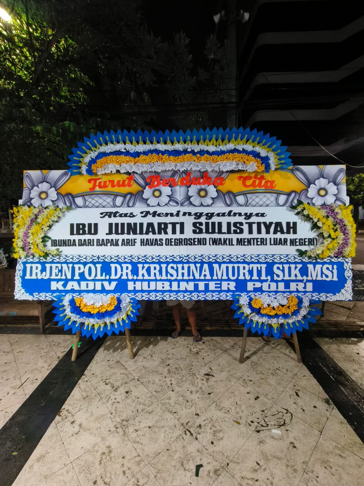 Papan bunga ini dilengkapi dengan tulisan ungkapan belasungkawa dari pengirim, seperti “Turut Berduka Cita” atau “Semoga Almarhum/Almarhumah Diterima di Sisi-Nya.” Warna yang digunakan umumnya lembut dan elegan, seperti putih, biru, dan ungu, untuk menciptakan suasana yang tenang dan penuh penghormatan.