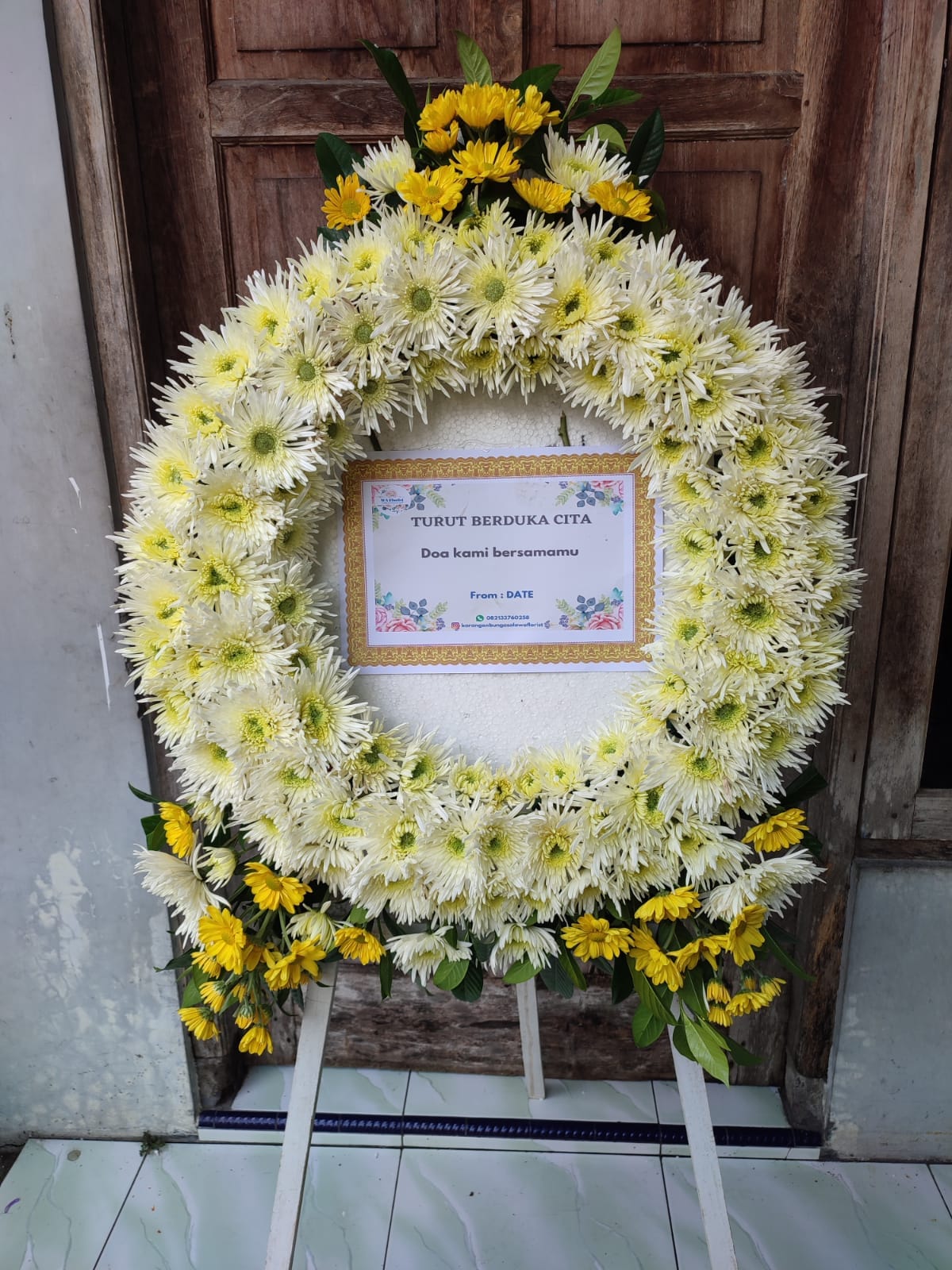 Dirangkai dengan harmonis menggunakan daun hijau sebagai pemanis, standing flower ini memberikan kesan mewah, eksklusif, dan penuh makna. Karangan ini juga sering dilengkapi dengan papan ucapan untuk menyampaikan pesan atau doa kepada penerima.